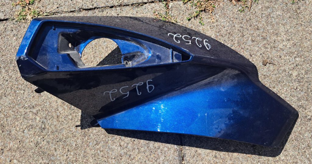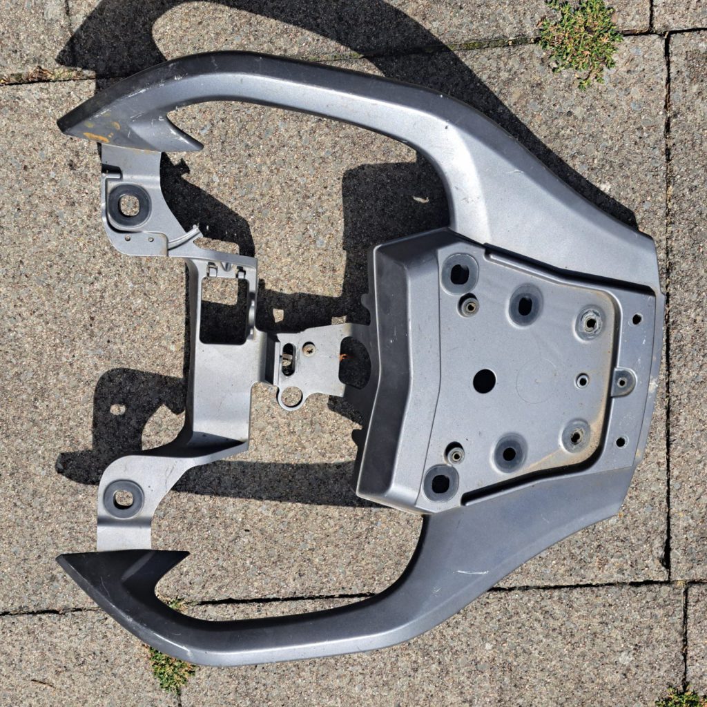 Ich habe einen zweiten Satz Verkleidungsteile zusammengtragen, welche sich in den unterschiedlichsten Zuständen befinden, was Kratzer oder Lack angeht. Für alle Teile gilt, sie werden von mir zuvor nach den mir zur Verfügung stehenden Möglichkeiten bestmöglich gereinigt und entfettet, sowie alle Anbauteile, wie Buchstaben, Herstellerbadges, Reflektoren u. ä. werden entfernt. Die Teile werden als Einzelteile angeliefert. Das Material der Verkleidungsteile ist ABS. Der Gepäckträger ist ebenfalls aus Kunststoff (auch ABS?). Als Farbe hätte ich gerne ein dunkles Rotmetallic wie z.B. von Huyndai bzw. Braungoldmetallic, eventuell von Opel (41C Mahagoni Braun Metallic?), aber auch da bin ich flexibel.
