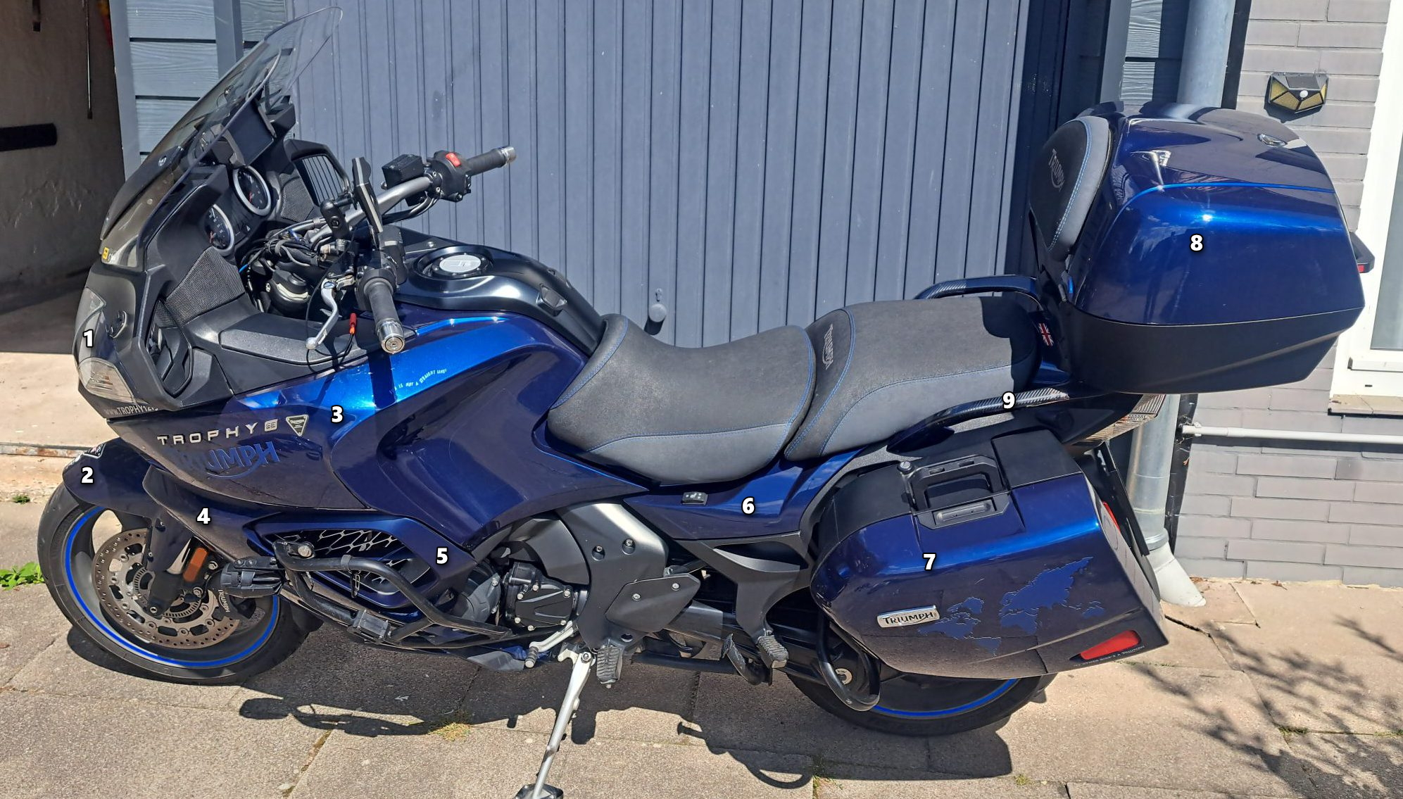 Stellenwert für mich: Die Trophy 1215 SE ist in D sehr selten (unter 200 zugelassene Fahrzeuge), und ich möchte meinem Motorrad trotz des Alters wieder zum Glanz alter Zeiten verhelfen. Aufgrund der luxuriösen Ausstattung, u. a. mit Sitzheizung, Tempomat, Radio und angepasster Sitzbank fahre ich gerne lange Strecken und zu vielen Treffen, ich möchte, dass dieses Motorrad auch optisch seine Besonderheit ausdrückt.